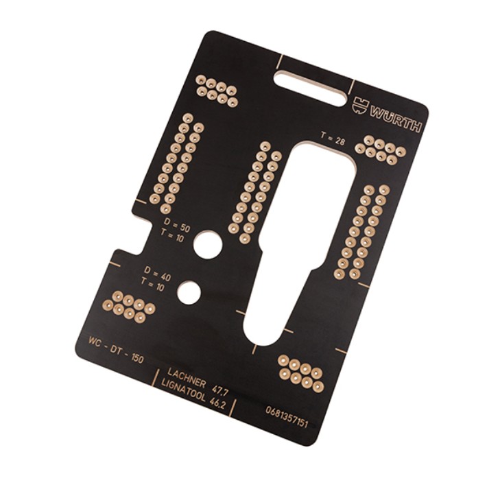 Die Frässchablone WC-T dient als Hilfsmittel beim händischen Fräsen von Einhängetaschen für die Verbindertypen WOOD CONNECTOR DT-150 und BC-50.