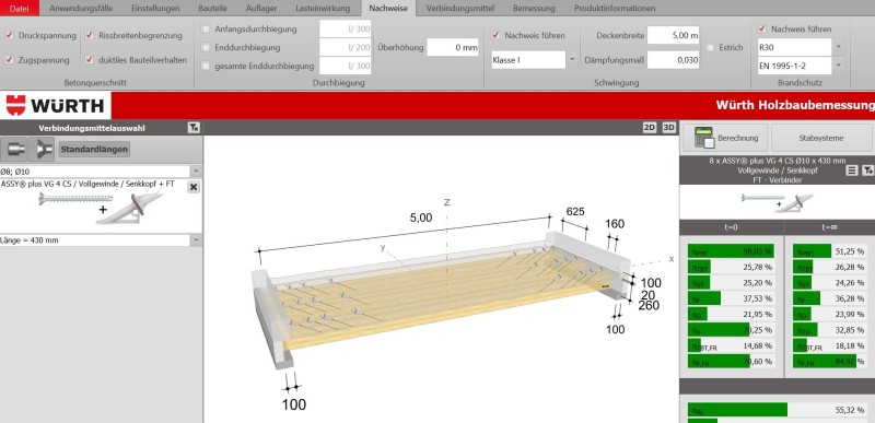 Holz-Beton-Verbundkonstruktionen sind unverzichtbar für den modernen nachhaltigen Holzbau. Mit der Würth Holzbausoftware kann der Schubverbund mittels Holzschrauben nachgewiesen werden.