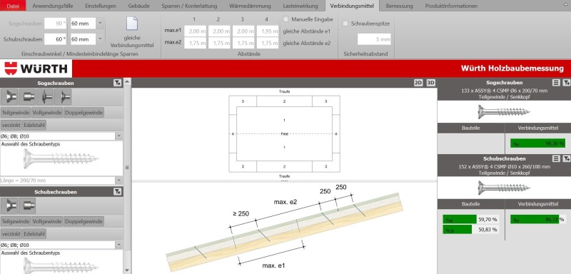 Mit der Würth Technical Software können alle am Projekt benötigten Schrauben zur Befestigung der Lattung nachgewiesen werden.