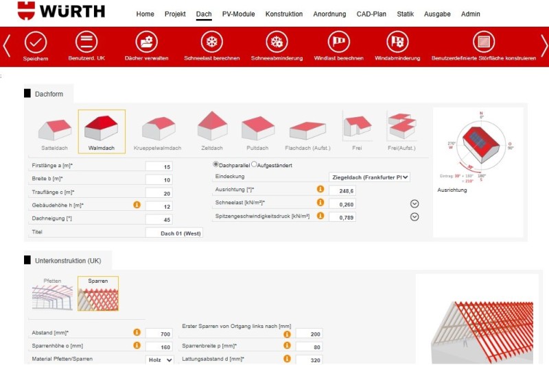 Mit der Würth Solar Befestigungssoftware gelingt die Planung schnell, intuitiv und zuverlässig – auf Basis aktueller Normen, technischer Regelwerke und bewährter Würth Produkte.