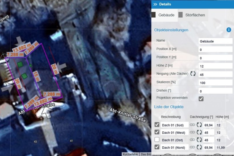Auf Grundlage von Google Maps oder Plänen können Dächer erfasst werden: