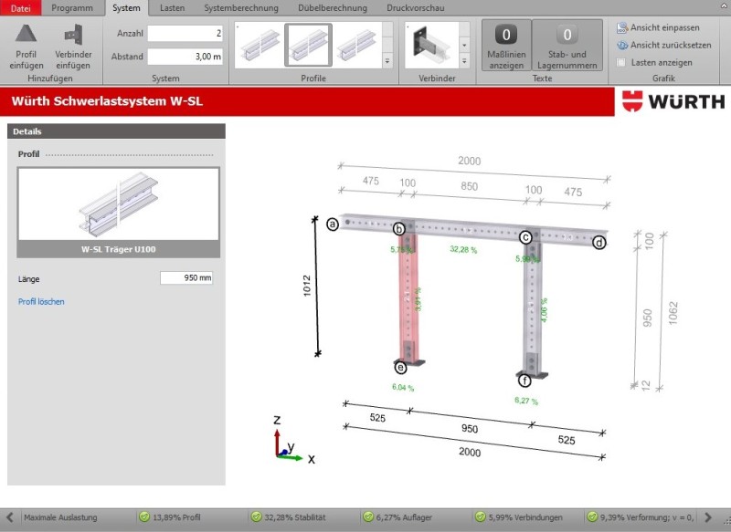 Die Software schlägt geeignete Produkte für den Anwendungsfall vor und dokumentiert die Planung über Stücklisten, Montageplan und einem statischen Nachweis.